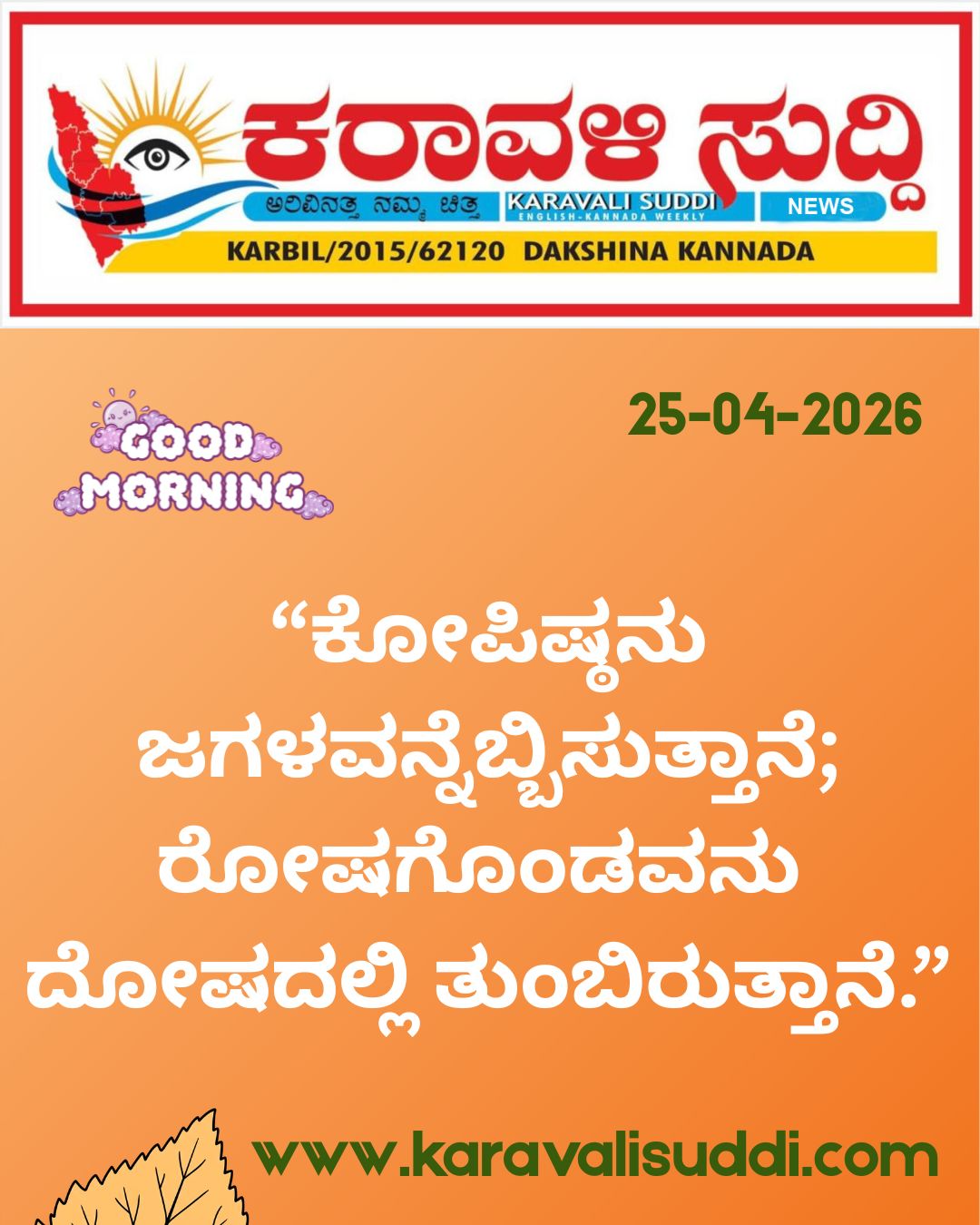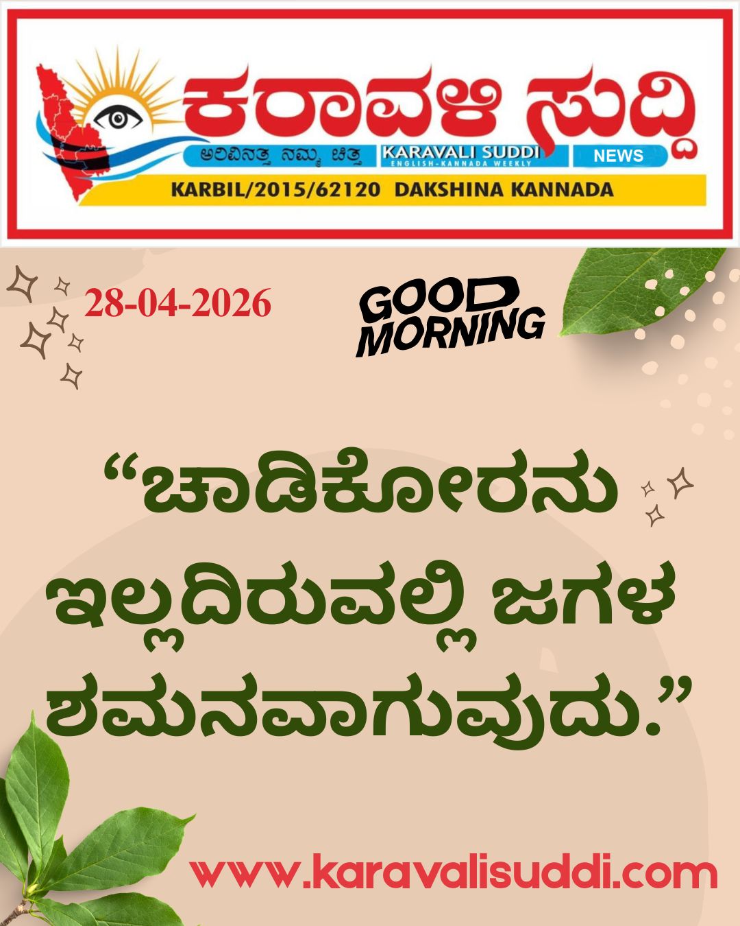 Karavali Suddi is a well-respected and widely-read newspaper that is published in Dakshina Kannada and read all over Karnataka. We provide in-depth coverage of local news and issues that include politics, events, business, crime, entertainment, job opportunities and sports.