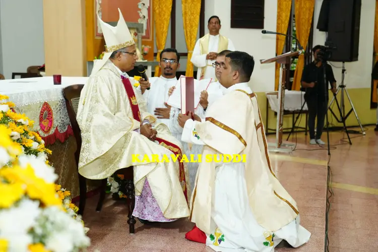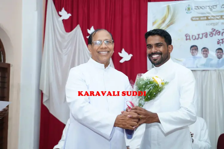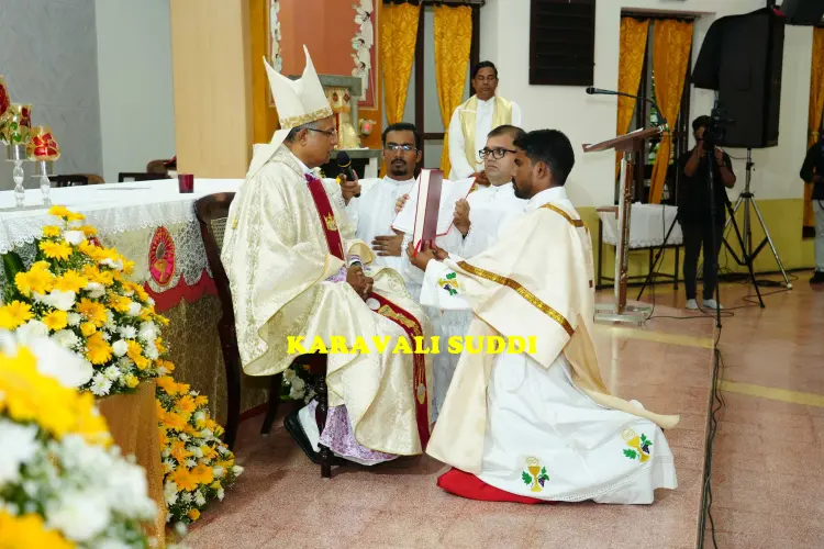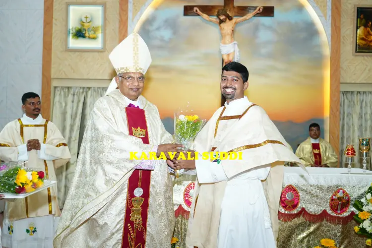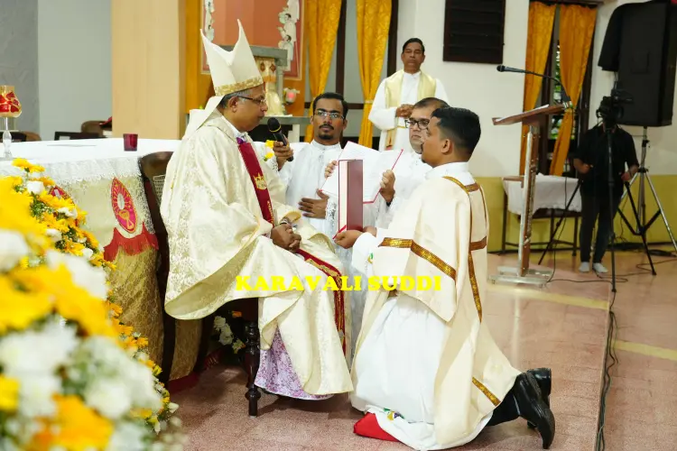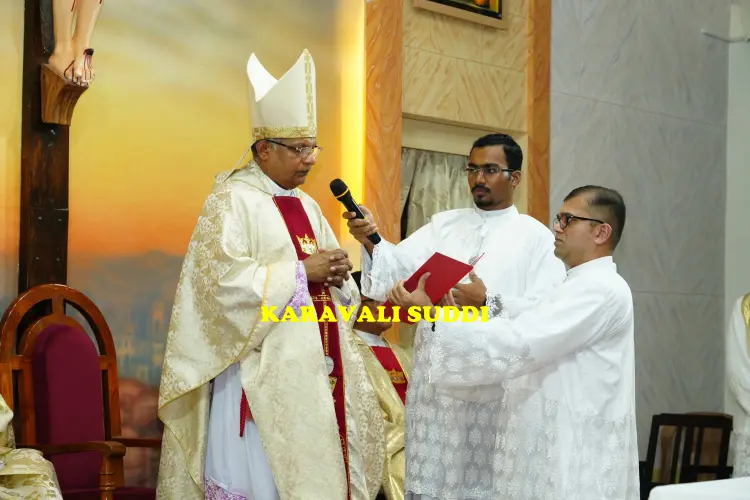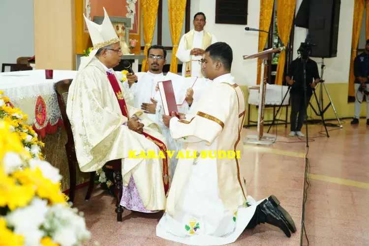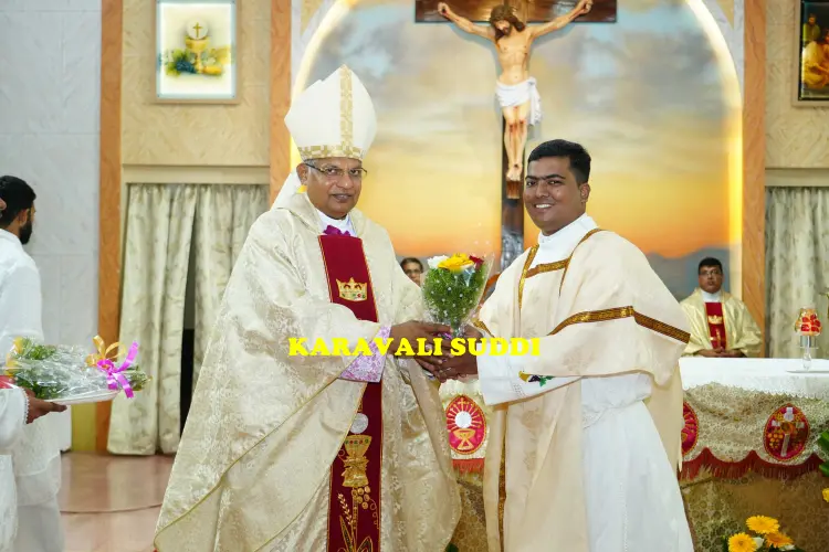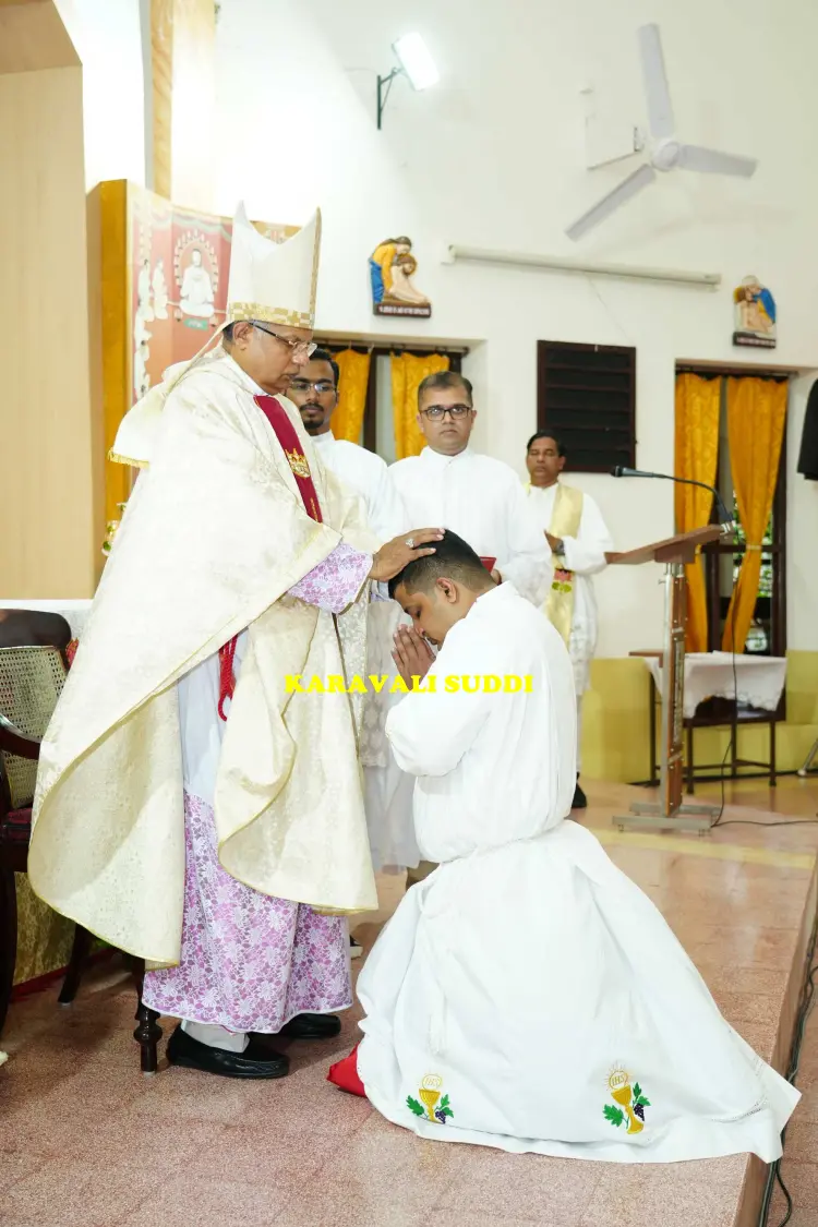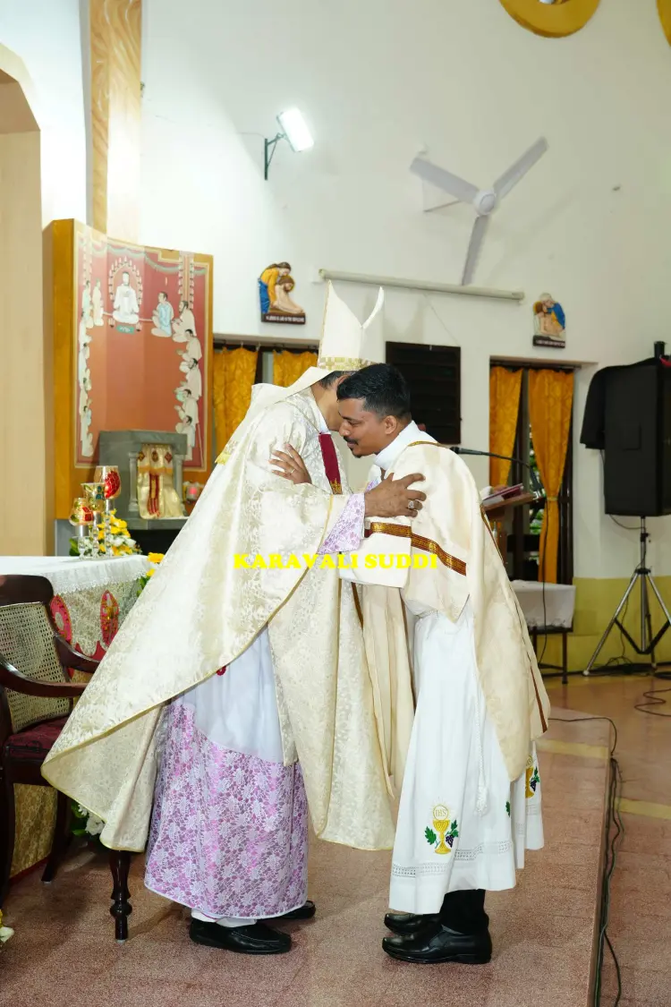 The Liturgy of Ordination, which included the Prostration, the Laying on of Hands and the Solemn Prayer of Ordination, was marked by deep reverence and devotion. The ceremony was animated by Rev. Fr Rohit Dcosta, Director of Mangala Jyothi. A large number of priests concelebrated the Mass, including Msgr.  Maxim L. Noronha, Vicar General; Rev. Dr.Rajesh Rosario, Rector of Saint Joseph Seminary and Rev. Fr Santhosh Rodrigues, Director of the Pastoral Centre, along with the seminary staff.