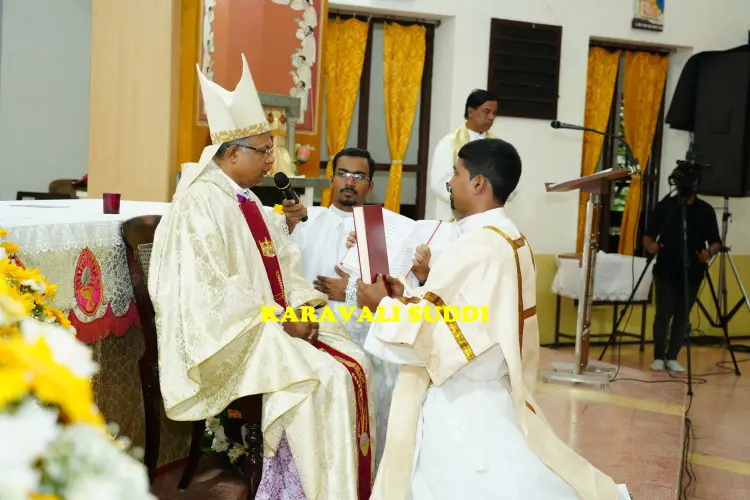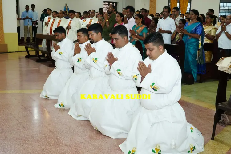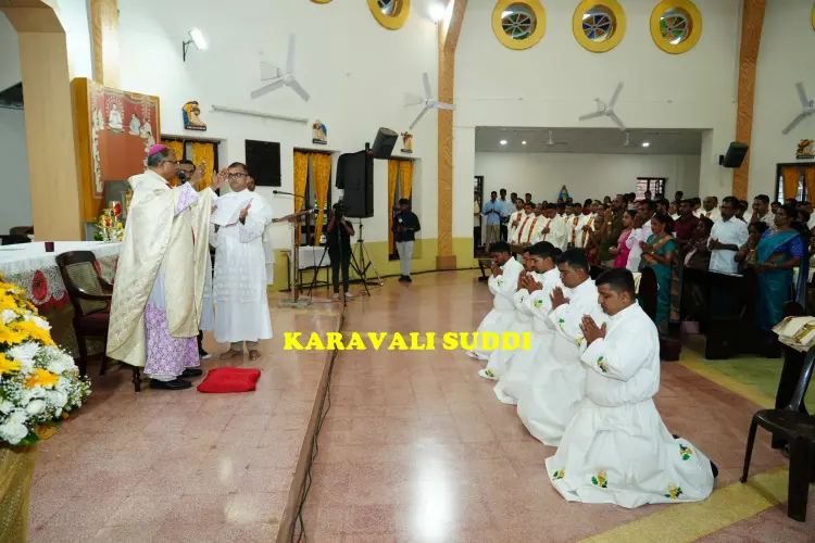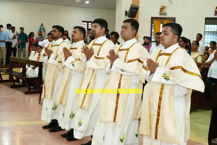 A spirit of faith and joy filled the Chapel of Saint Joseph Interdiocesan Seminary, Jeppu, on Tuesday, October 14, as five brothers were ordained to the Sacred Order of Deacons for the Diocese of Mangalore. The solemn Eucharistic celebration began at 3:30 p.m., with Most Rev. Dr Peter Paul Saldanha, Bishop of Mangalore Diocese, as the main celebrant and ordaining prelate.