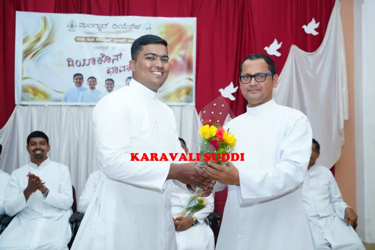 After the Ordination Mass, a brief felicitation program was held in honour of the newly ordained deacons. Rev. Fr Johnson Sequeira, Principal of Lourdes Central School, delivered words of appreciation on behalf of the diocese. Bishop Saldanha expressed heartfelt gratitude to the parents and families of the deacons for their generous offering of their sons to God’s service. He also commended the vocation promoters and seminary formators for their tireless dedication in nurturing the future priests of the Church.
