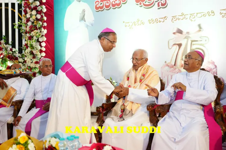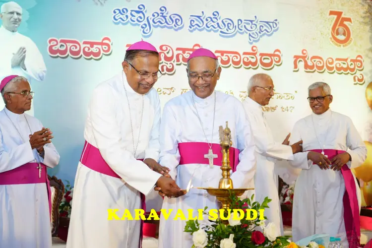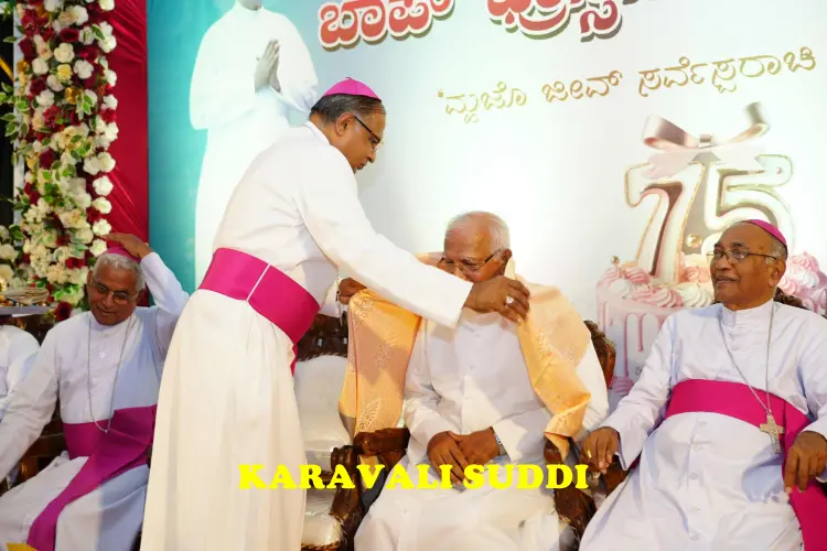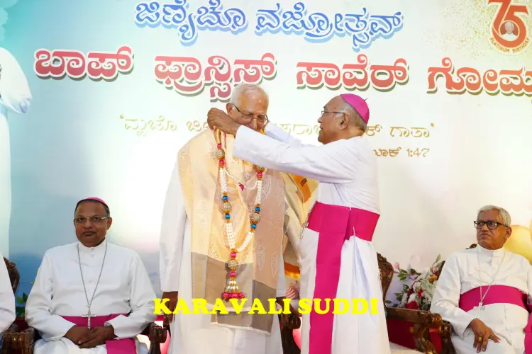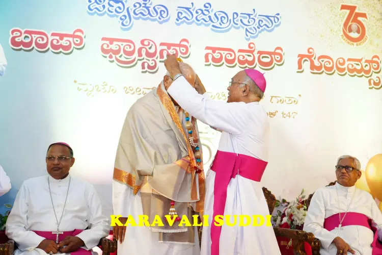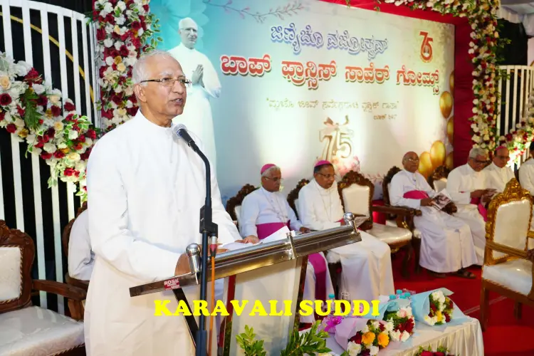 A spirit of joy and thanksgiving filled the Zuze Vaz Home, Nandigudda, on Tuesday, October 14, as Rev. Fr Francis Xavier Gomes one of the most respected Priests of the Diocese of Mangalore, celebrated his 75th birthday. The platinum jubilee of his life and 50 years of priestly service was marked with a solemn Thanksgiving Eucharist, followed by a grand felicitation ceremony attended by bishops, clergy, dignitaries and well-wishers from across the region.