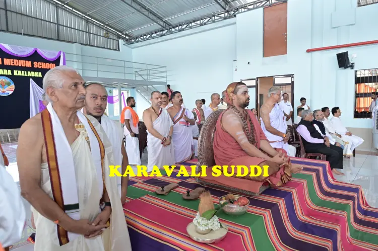 ಶ್ರೀರಾಮ ಆಂಗ್ಲ ಮಾಧ್ಯಮದ ನೂತನ ಸಭಾಭವನ ‘ಶಂಕರಾಚಾರ್ಯ’ವನ್ನು ದೀಪ ಬೆಳಗಿಸಿ ಉದ್ಘಾಟಿಸಿದ ಅವರು ವಿದ್ಯಾರ್ಥಿಗಳ ಪ್ರತಿಭಾ ಪ್ರದರ್ಶನವನ್ನು ವೀಕ್ಷಿಸಿ ಮೆಚ್ಚುಗೆ ವ್ಯಕ್ತಪಡಿಸಿದರು. ಬಳಿಕ ಶಾಲಾ ಪರಿಸರದಲ್ಲಿರುವ ಗೋಶಾಲೆಗೆ ತೆರಳಿ ಹಸುಗಳಿಗೆ ಮೇವು ನೀಡಿದರು. ಮಕ್ಕಳ ಉದ್ಯಾನವನ ವೀಕ್ಷಿಸಿದರು. ವಿದ್ಯಾಕೇಂದ್ರದ ದೈನಂದಿನ ಚಟುವಟಿಕೆ ಸರಸ್ವತಿ ವಂದನೆ ಬಳಿಕ ಕಾರ್ಯಕ್ರಮದ ಅಧ್ಯಕ್ಷತೆಯನ್ನು ವಹಿಸಿದ್ದ ಡಾ. ಪ್ರಭಾಕರ ಭಟ್ ಕಲ್ಲಡ್ಕ ಪ್ರಾಸ್ತಾವಿಕವಾಗಿ ಮಾತನಾಡಿ ಗಣ್ಯರನ್ನು ಸ್ವಾಗತಿಸಿದರು. ಶ್ರೀ ಸಂಸ್ಥಾನದವರು ವಿದ್ಯೆಯ ಜೊತೆಗೆ ಸಂಸ್ಕಾರವು ವ್ಯಕ್ತಿಗೆ ಭೂಷಣ. ಶಿಕ್ಷಣದ ಜೊತೆಗೆ ಸಂಸ್ಕಾರಕ್ಕೂ ಪ್ರಾಶಸ್ತ್ಯ ನೀಡುತ್ತಾ ಧರ್ಮದ ರಕ್ಷಣೆಯಲ್ಲಿ ತೊಡಗಬೇಕು ಎಂದರು.