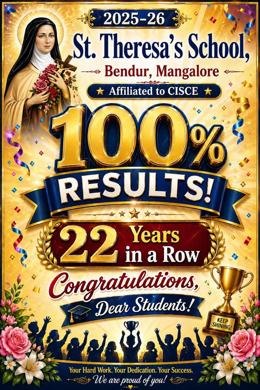 MANGALURU: In a resounding celebration of intellectual brilliance and disciplined effort, Saint Theresa’s School, Mangaluru, has once again etched its name in the annals of academic history. The institution is proud to announce a flawless 100% pass rate in the ICSE Class X Board Examinations for the 2025–26 academic session—a milestone the school has now maintained for an incredible 22 consecutive years.